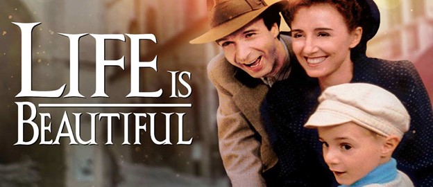 • زندگی زیباست Life Is Beautiful داستان زندگی کتاب فروش بی‌دغدغه یهودی به نام «گوییدو» را روایت می‌کند. در این فیلم ماجرای ازدواج این مرد یهودی با زنی مسیحی و زیبا روایت می‌گردد که صاحب فرزند پسری می‌شوند و تا قبل از حمله نیروهای آلمانی به ایتالیا در آرامش زندگی می‌کنند. در این فیلم گوییدو تلاش می‌کند تا فرزندش از آسیب‌های روانی اردوگاه جنگی در امان بماند.